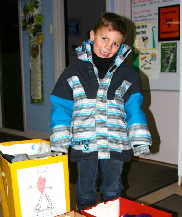 Eli is from Balgonie, Saskatchewan. He wanted to do something for kids his age who were less fortunate than he is. He made speeches at different organizations such as the Fifty Plus Club, the Kinsmen, different churches, and made announcements on the intercom at his school and other schools requesting that people donate socks to those who might need them this winter.